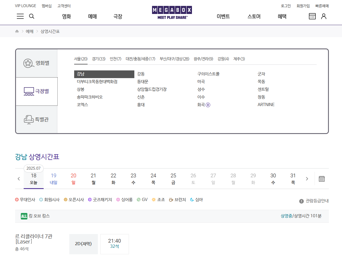 메가박스 상영시간표 확인 방법