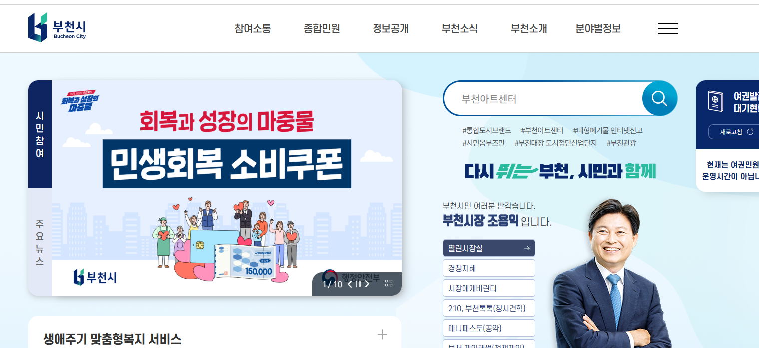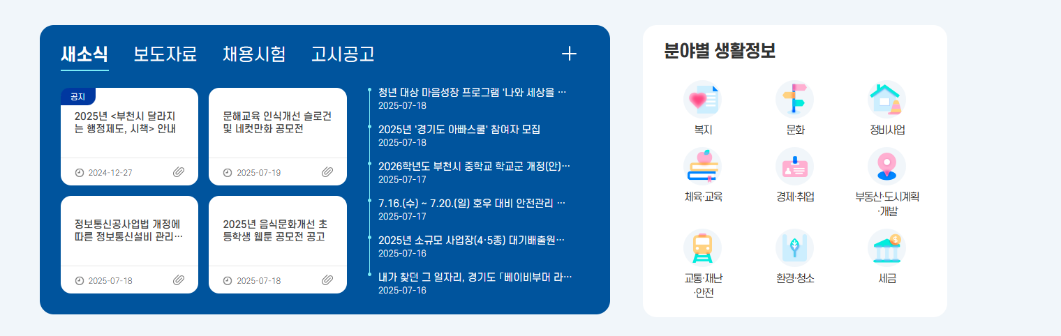 부천시청 홈페이지에서는 시민들의 생활 편의를 돕기 위한 다양한 정보를 제공합니다: