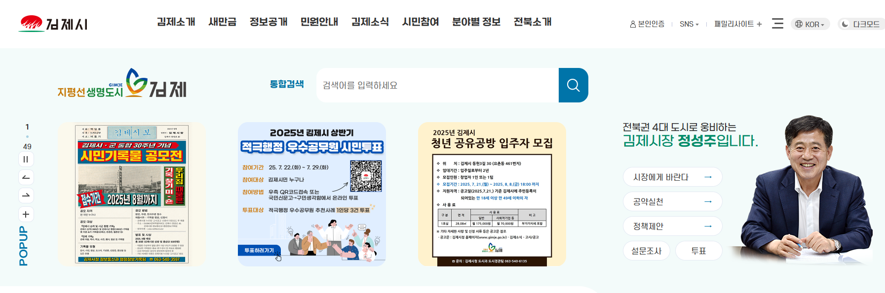 - 행정 정보: 김제시의 행정 정보 및 소식 제공