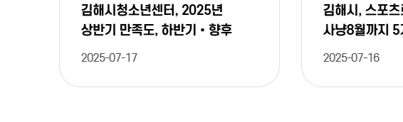 김해시청 홈페이지는 대한민국 공식 전자정부 누리집으로 인증받아 안전하고 신뢰할 수 있는 온라인 서비스를 제공합니다. 홈페이지는 시민과 함께하는 시정 실현을 위해 빠르고 알찬 시정 정보를 제공하며, 투명한 시정과 청렴한 시정을 위해 지속적으로 노력하고 있습니다.