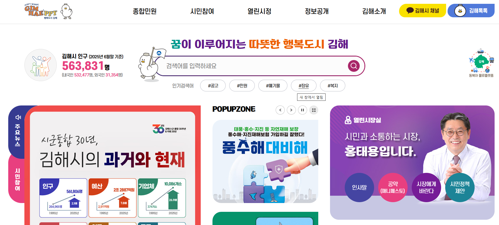 김해시청 홈페이지는 시민들의 일상생활에 필요한 다양한 정보를 체계적으로 제공합니다: