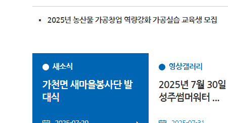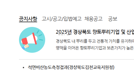 ‘군정소식’ 메뉴에서는 성주군에서 발표하는 최신 소식, 공지사항, 고시·공고, 보도자료 등을 확인할 수 있습니다. 지역 행사나 행정 알림, 입찰 정보 등 중요한 정보가 주기적으로 업데이트되니 자주 확인하는 것이 좋습니다.