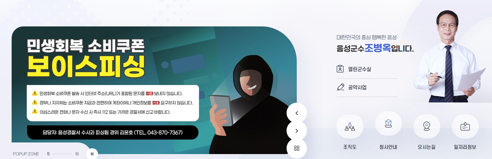 음성군청 홈페이지는 단순한 정보 제공을 넘어, 군민과의 소통을 실현하고, 군민의 참여를 이끌어내는 디지털 행정의 중심 역할을 수행하고 있습니다.