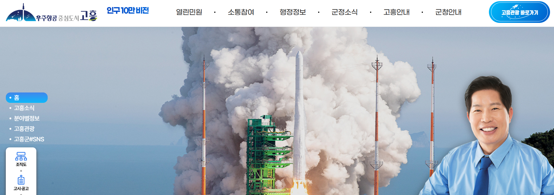 고흥군청 홈페이지의 주요 메뉴